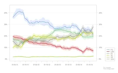 The Irish Polling Indicator calculates a ‘best estimate’ of parties’ standing in the polls, based on reported opinion polls from all major Irish polling firms, Behaviour & Attitudes, Ipsos MRBI, Millward Brown and Red C. Explore all results from the most recent Polling Indicator here.