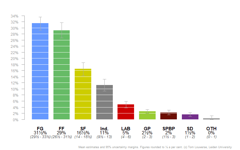 Please note that the most recent poll incorporated in this update is from the beginning of this month. At that time, both Fine Gael and Fianna Fáil seemed to do quite a bit better than their GE 2016 result.