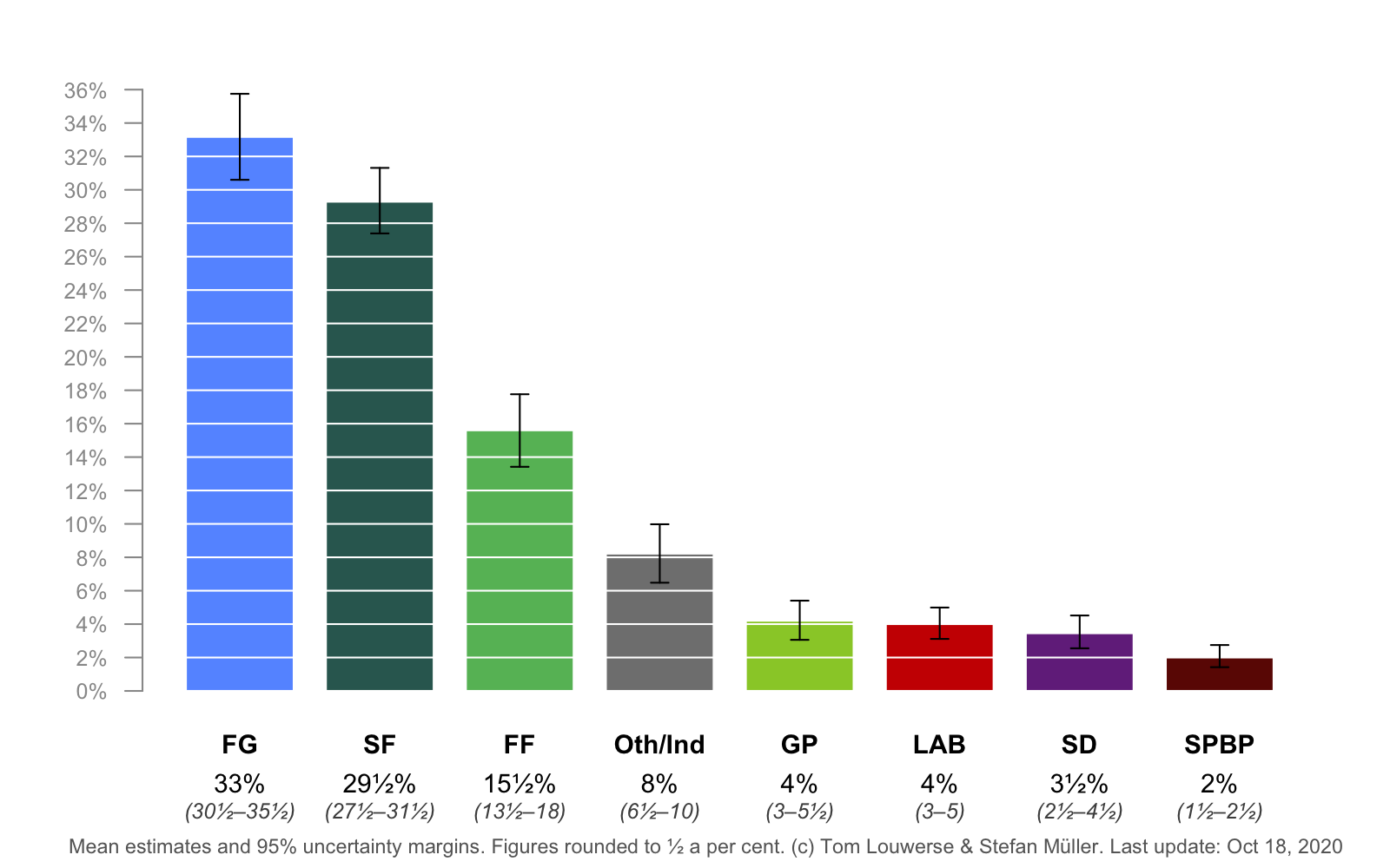 Irish Polling Indicator, update October 2018